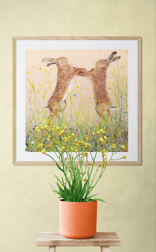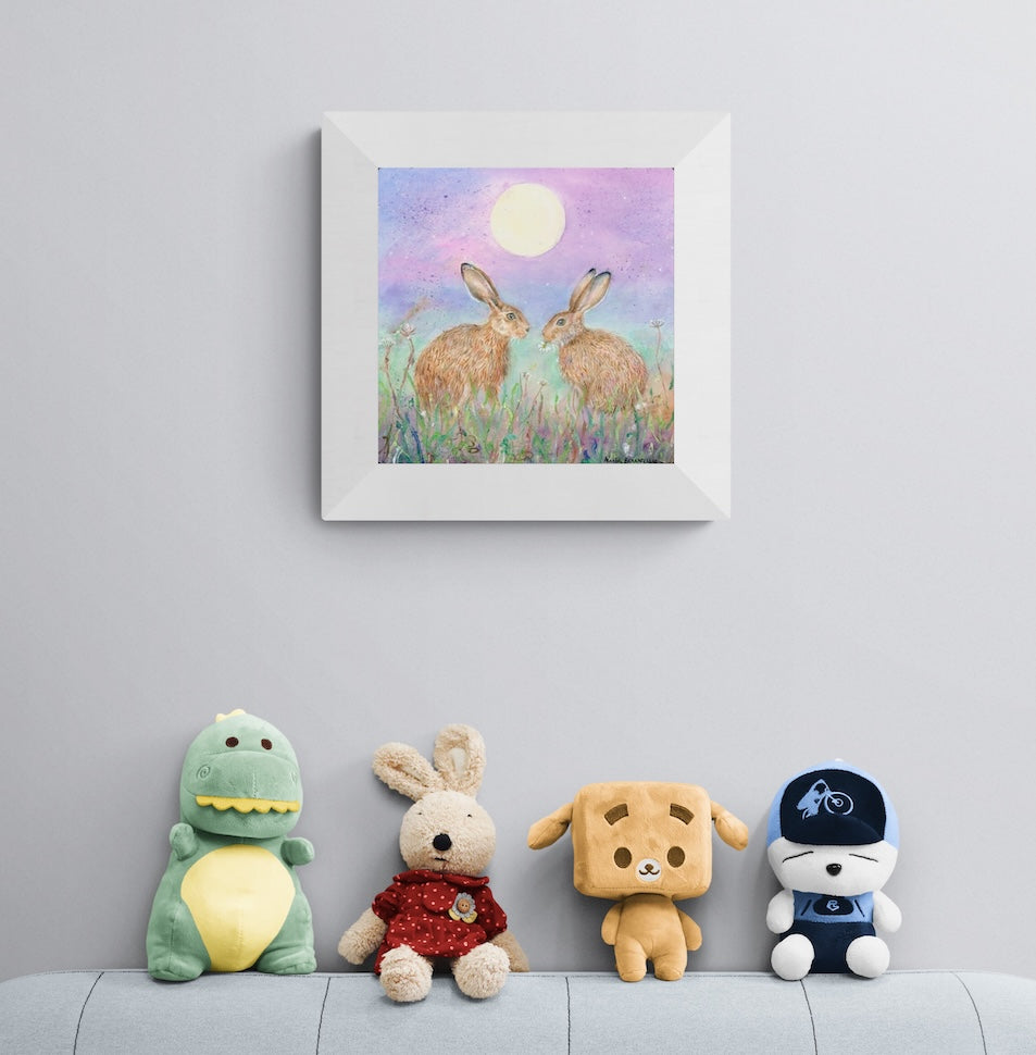 Painting wildlife is a passion and I loved painting these two hares exchanging a flower. Perfect for a present to someone you love, an animal lover or just because. The foreground is painted with twigs whilst I used brushes to...