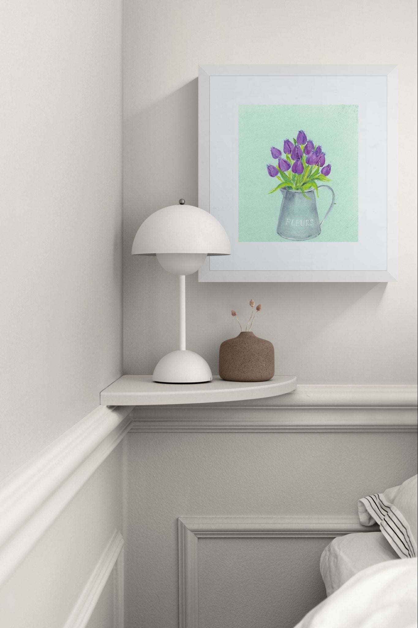 I love painting Spring Tulips in their array of colours. I used the end of a twig to paint this picture in a pewter jug. This picture would enliven any room in a house or office, bringing Nature in. Shipping...